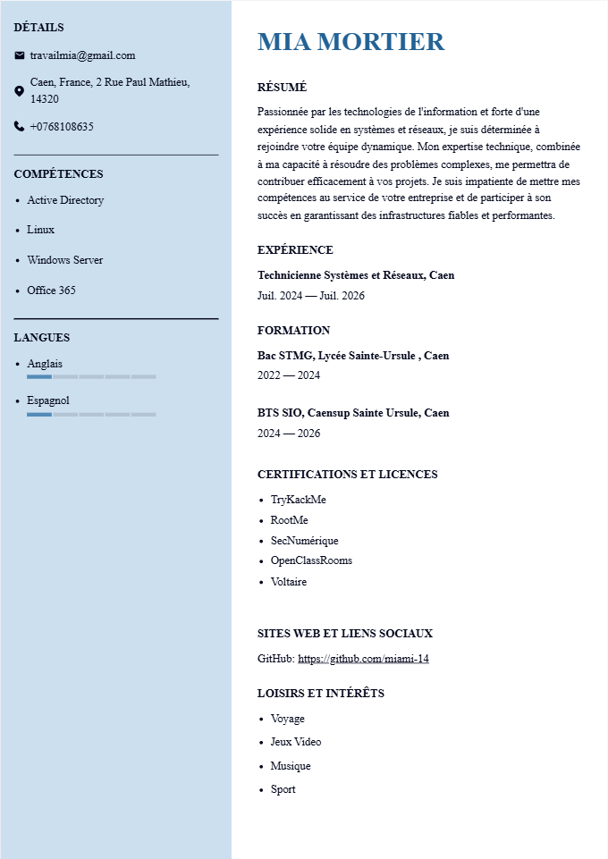 J'ai choisi ce thème car il correspond directement aux risques des clients. J'ai appris les mécanismes de protection : segmentation réseau, chiffrement des flux, filtrage applicatif. Ce qui m'a marquée : la montée en puissance des attaques par double extorsion.